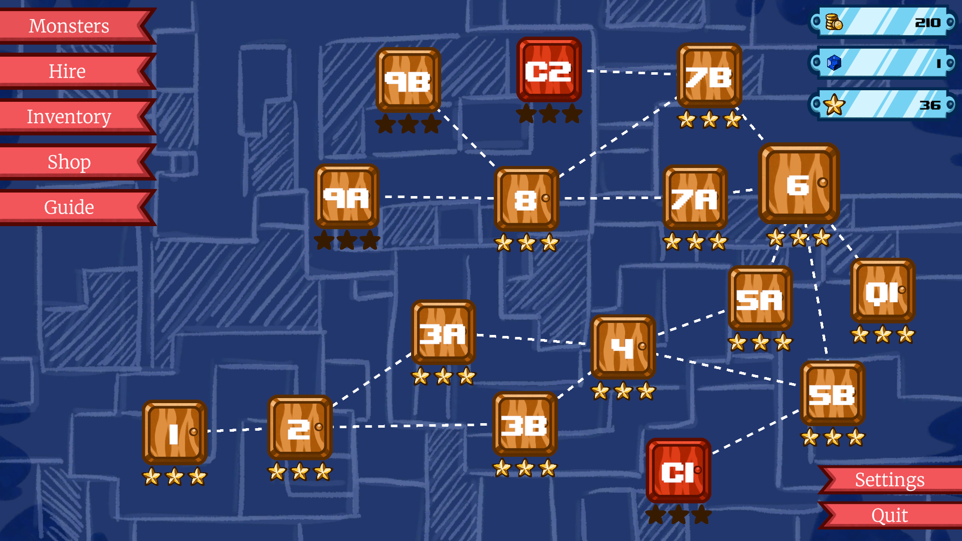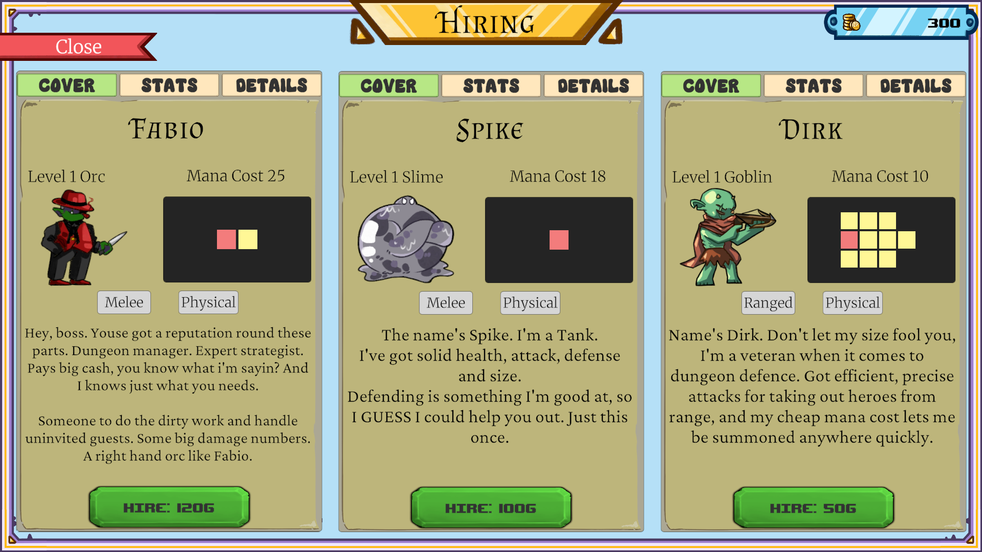 Starter dungeon is a tower defense game - Manage the dungeon by hiring and summoning monsters to defeat the heroes before they reach the treasure!